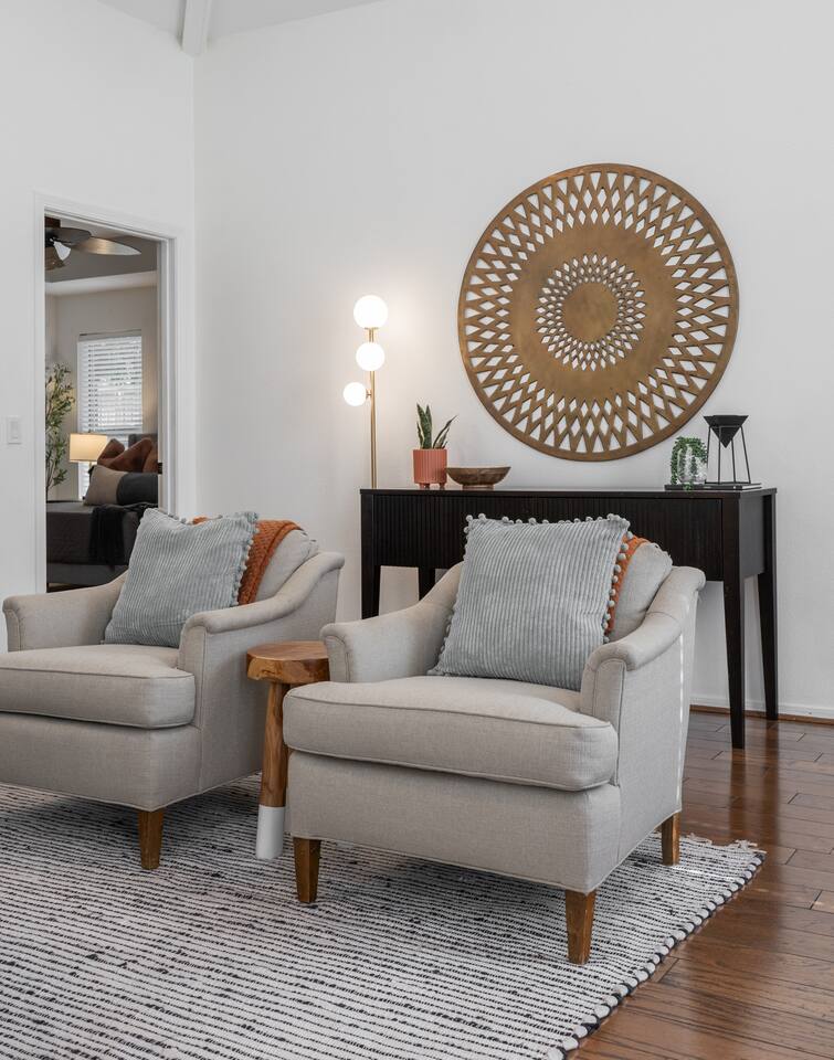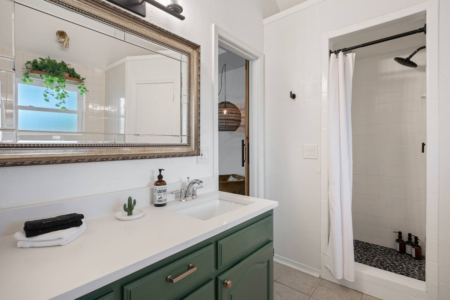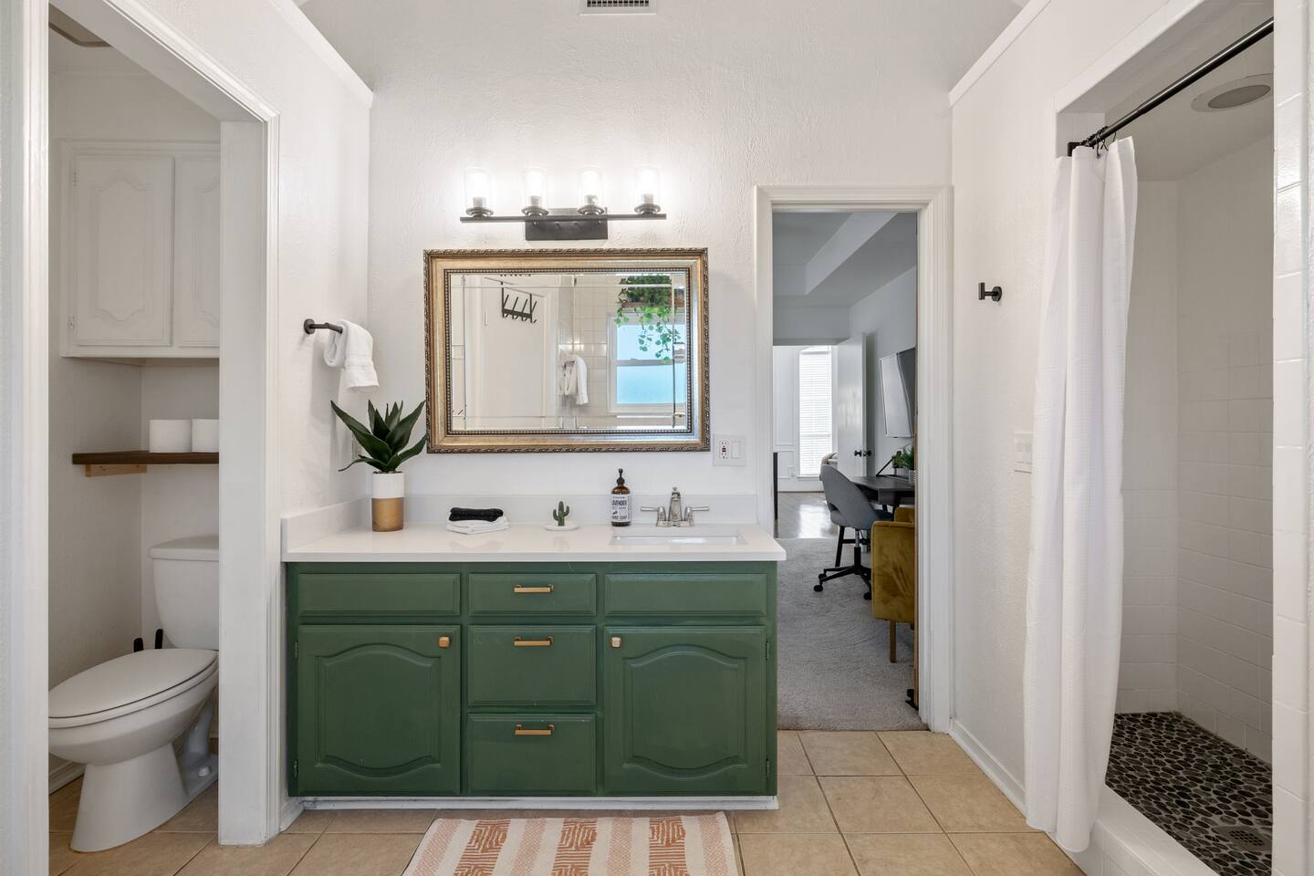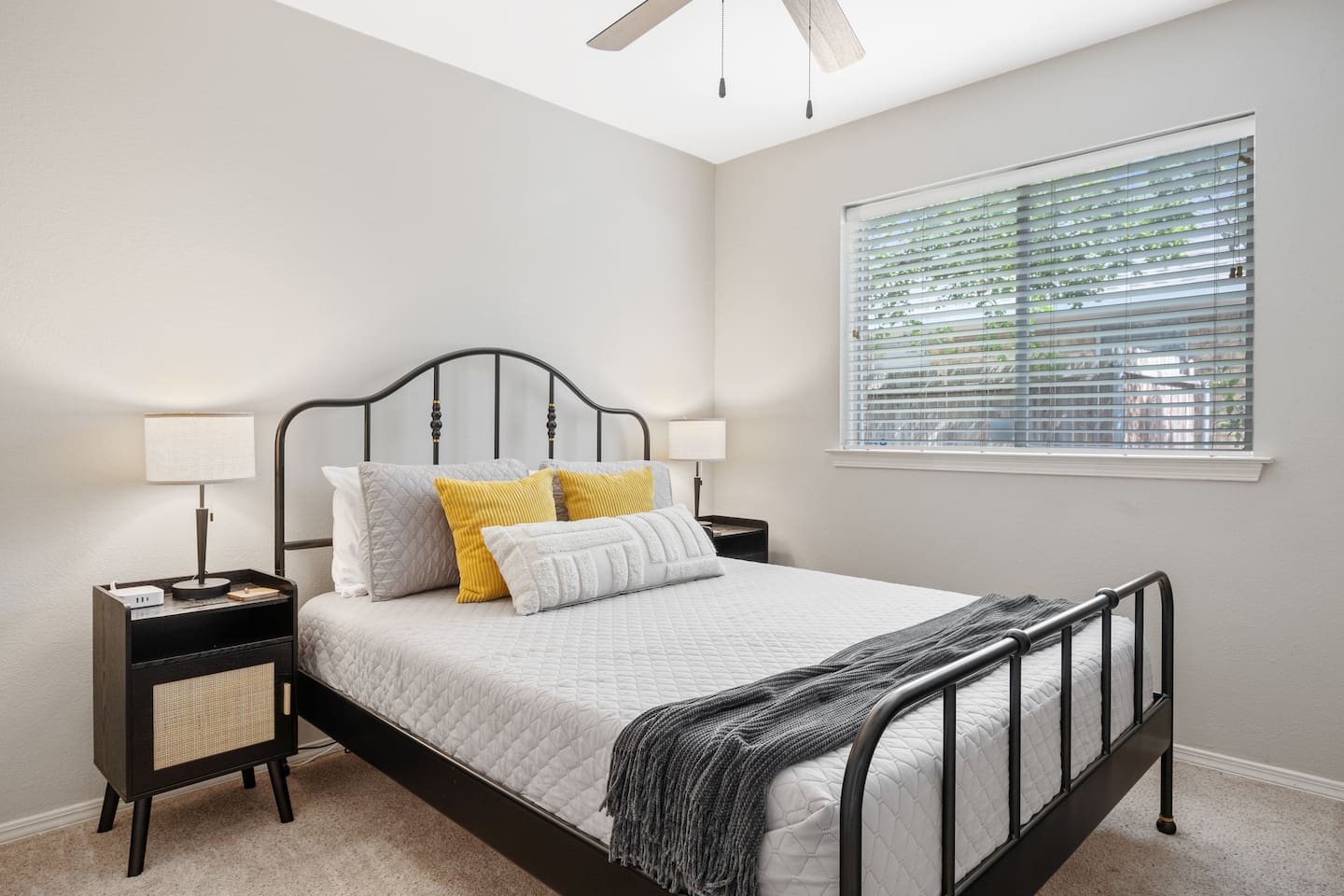 King Suite with Ensuite Bathroom: - Privately located at the back of the house - King memory foam mattress - Desk with office chair and high speed internet - Smart TV - Ensuite Bathroom with soaking tub and walk-in shower - Stocked with shampoo, conditioner & body wash - Additional AC unit for maximum cooling - luggage rack - Extra extension outlet for all your electronics Guest Bedroom #1 - Queen memory foam mattress - Large closet - Luggage rack - Extension outlet Guest Bedroom #2 - Queen memory foam mattress - Large closet - Luggage rack - Extension outlet - Pack n Play - High Chair Guest Bathroom - Conveniently located off of the main living area, separating both Guest bedrooms - Stocked with shampoo, conditioner, & body wash Kitchen and Dinning Room: - Stocked with Pots & Pans - Includes children's plates, cups and utensils - Games - Keurig Duo with K-cups for your enjoyment - Front loading LG Washer and Dryer Living Room: - Large Sofa and chairs, seating for 6 - Fireplace - Smart TV Patio: - Large table and chairs - BBQ Grill - Outdoor Lighting - Opens up to large backyard *Private 2 Car Garage with garage door remote for your convenience